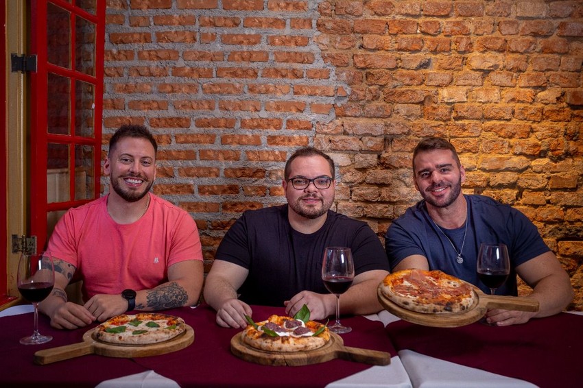 Os anfitriões Daniel Lucco, Marcos Paulo e Guilherme Paim (foto) recebem amigos, influenciadores especializados em avaliação de restaurantes e personalidades como Analice Nicolau e Benjamin Back.