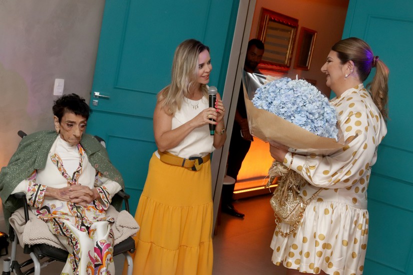 Em determinado momento, Fátima deu uma paradinha para um agradecimento especial à Dra. Fabíola Peixoto, que acompanhou com muita atenção e carinho o recente tratamento da sua mãe Haide Hana. Lhe presenteou com, além das belas e emocionadas palavras, um lindo buquê de flores.