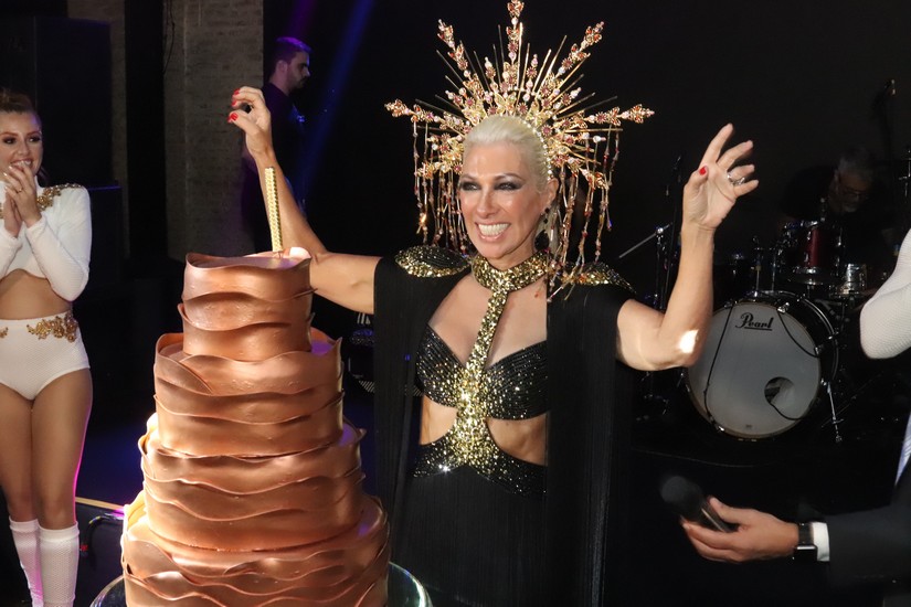 A anfitriã recebeu maravilhosamente bem. Ela se esmerou para receber e cuidou que a noite superasse qualquer expectativa. Estava feliz. Também pudera, foi mesmo uma festa e tanto! A alegria de Lucia em receber cada convidado era contagiante. Cada um se sentiu honrado em estar ali naquela noite. Ela vestiu dois looks. O primeiro, feito por uma grande amiga, a Alexandra Fractuoso, da Maison Alexandrine. O segundo, para o momento do parabéns, foi cenográfico. Mesmo porque, sua entrada foi performática. Entrou acompanhada de personagens. O traje foi feito por Bruno Oliveira que só assina roupas artísticas e faz eventos como o Miss Universo, dentre outros. A apresentação dos modelos teve temática “Golden Gods”, desenvolvida por Alberto Goya e inspirada no último desfile da Dolce & Gabbana.