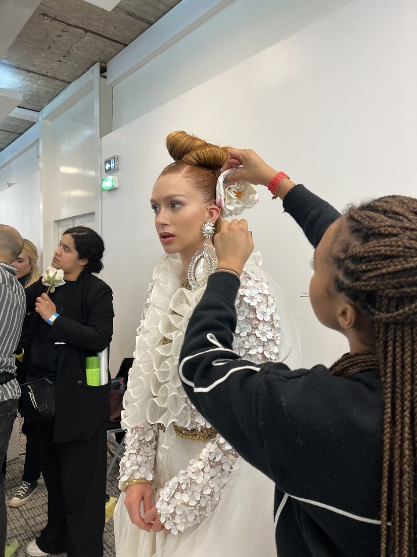 A atriz e empresária Marina Ruy Barbosa marcou presença de uma forma única - foi convidada pelo Sr. Valli, diretor criativo de Giambattista Valli, para andar na passarela em nome da marca. Além de ser a primeira atriz brasileira a participar de uma apresentação de Alta Costura da maison, o convite foi coroado com um destaque ainda mais especial: Marina foi escolhida para ser a noiva e fechar o desfile ao lado do diretor criativo, uma importante tradição da semana de Couture.