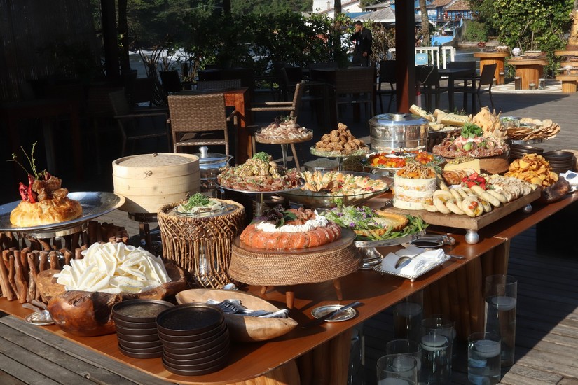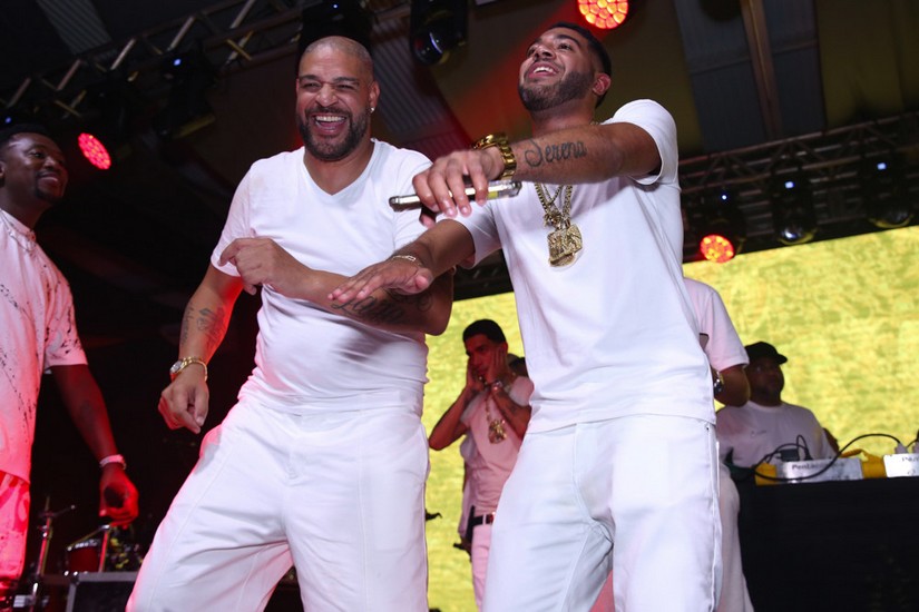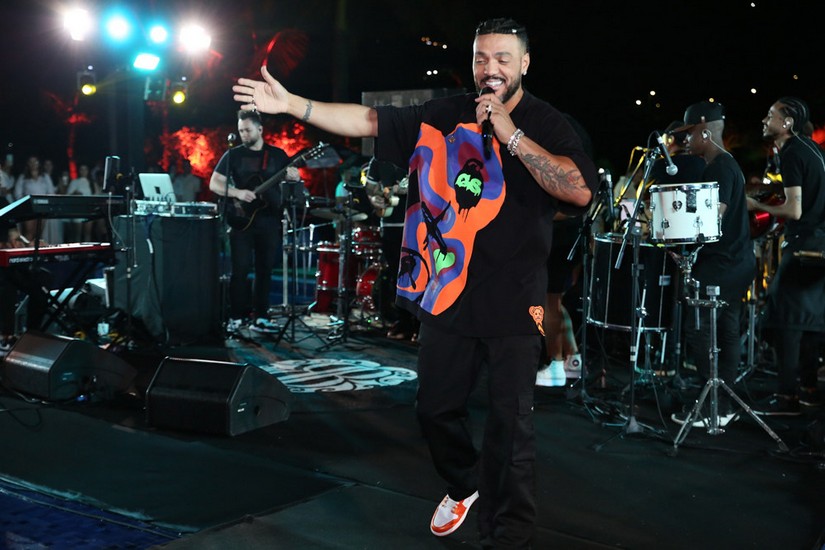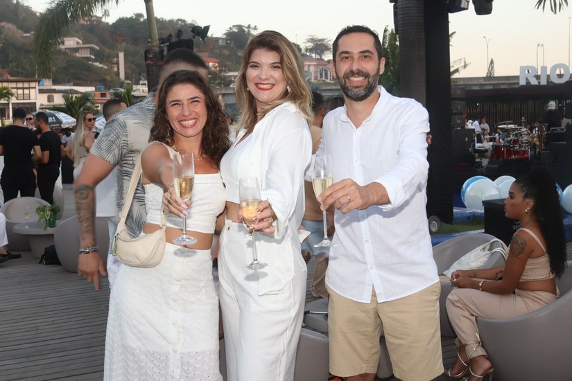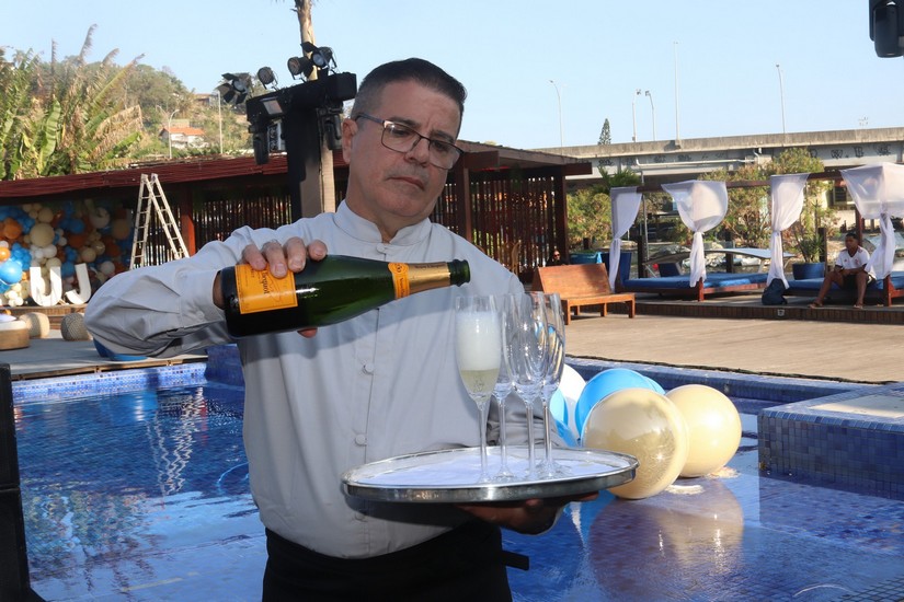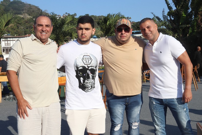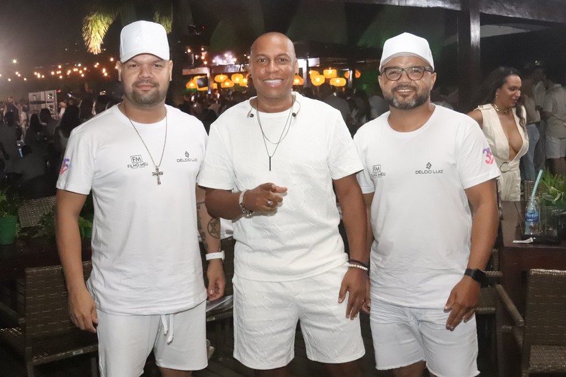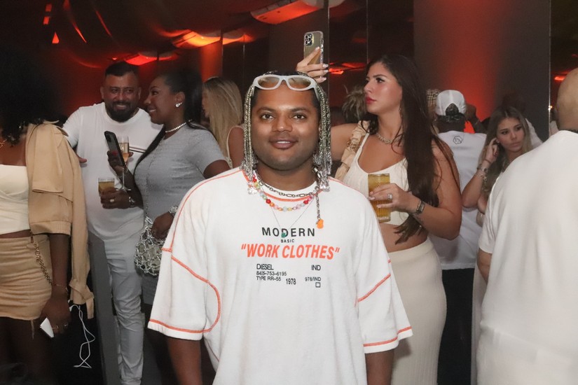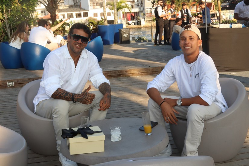 Vamos à festa? No convite, o texto dizia que tudo começaria às 15 horas. Às 16, o champagne Veuve Clicquot e o whisky John Walker Reserva Especial começaram a ser servidos e foram seguidos pela abertura do imenso bar de drinquetos que eram servidos de acordo com o gosto dos convidados. Haviam todos os drinques que vocês possam imaginar. Um espaço de carnes na brasa mais imensas mesas de comidinhas deliciosas. Os garçons passavam o tempo inteiro com iguarias maravilhosas e, em sua maioria, o camarão foi o fruto do mar que estrelou nas mais deliciosas e apetitosas bandejas. Querem saber mais? Eu conto. Em um certo momento, perguntei a um assessor do evento: “Essa festa vai longe, não é?” A resposta foi: “Daqui do deck os convidados irão para aquele espaço, me mostrando um toldo gigantesco, para uma rave, cheia de atrações, e o horário previsto para encerrar será às 7 da manhã”. Oi??? “E terão vários shows de artistas famosos”, completou ele. Confesso que fiquei animadíssimo e esperando tudo acontecer. Então, logo chega o aniversariante com look total Louis Vuitton, camisa e bermuda com estampa de grafismo azul e tênis Rivoli.