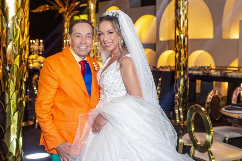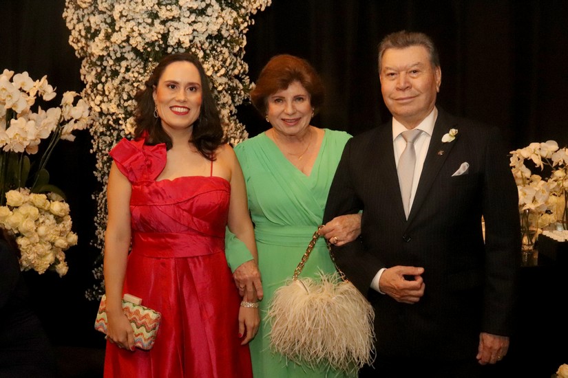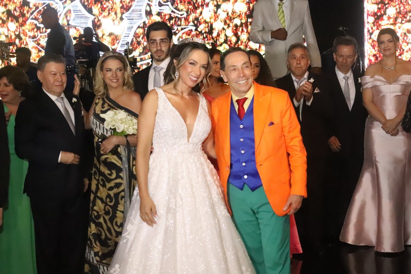 Aos poucos, os convidados foram chegando ao local da cerimônia. As entradas dos padrinhos, pajens e damas, noivo e noiva são sempre muito esperadas e, vocês sabem, os celulares ficam a postos para registrarem todos os momentos. E que momentos emocionantes! Valdecir entrou de mãos dadas com o filho Valdecir Júnior. Foi lindo. Na entrada, ele beija carinhosamente o pai no rosto e seguem rumo à nave. O noivo vestia um terno colorido. No auge dos seus 7O anos, ele encomendou o traje ao estilista Ivan Aguilar de jeito que todas as peças fossem de cores diferentes e com muita alegria. Paletó cor de laranja, calça verde, colete azul, camisa bege, gravata vermelha. Isso representa a alegria constante do nosso querido noivo. Com certeza é a representação material do seu sentimento com o momento, de enorme felicidade. A adorável Geisi vestiu um modelo exclusivo de Paula Boulanger que sabe deixar as noivas capixabas um arraso. Ela usou tiara e brincos de Oswaldo Moscom. Geisi entrou deslumbrante na igreja de mãos dadas com o filho Miguel ao som da Marcha Nupcial. As alianças foram levadas pela filha Mirela. Confesso que fiquei emocionado por demais com esse momento família compartilhado por todos nós…