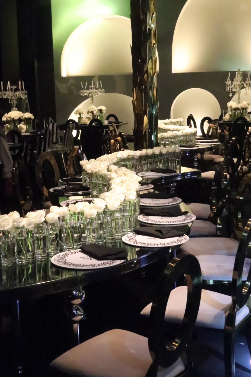 Se uma parte dos convidados estava na pista, outra aproveitava a excelente convivência social, o ambiente glamoroso e o serviço espetacular do Le Buffet, comandado por Giovanna e André Rosa, incluindo aí uma mesa enorme de frutos do mar com camarões gigantes, lagostas, mexilhões, vieiras, ostras, peixes assados e tudo o que você pode imaginar ou não. O serviço volante com outros canapés e bebidas, circulando intensamente. Para quem preferia drinques, um enorme open bar foi montado ao lado da pista.