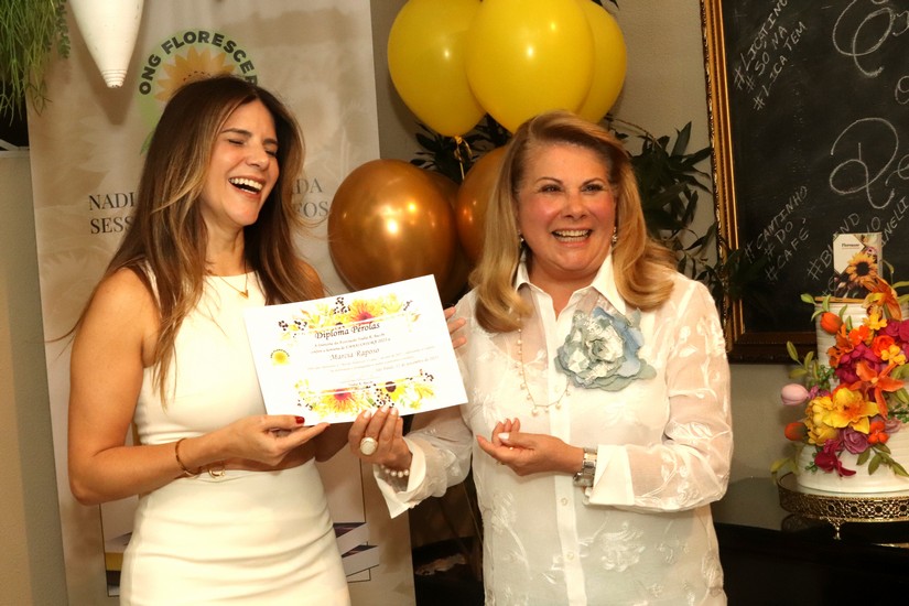 Márcia Raposo, que também deu seu depoimento no livro, recebeu o diploma de embaixadora da ONG. Estar ao lado dessas mulheres do bem, incansáveis, incríveis e com todo esse amor pelo próximo é inspirador. Elas fazem de tudo para dar o seu melhor para as crianças menos favorecidas de Paraisópolis! É preciso sempre ajudar, abraçar essa causa com muito carinho. Afinal, são 33 anos compartilhando amor pelo outro! Elas merecem, e sempre terão, muito espaço aqui na PORTFOLIO. Esta ONG merece nosso apoio incondicional.