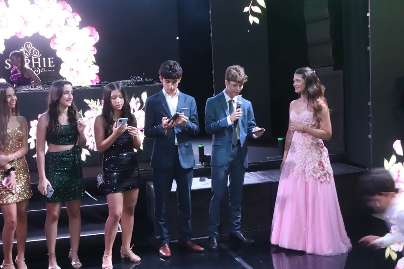 Sophie recebia seus convidados ao lado dos pais Peinha Carneiro Mendonça e Fernando Corteletti. Com seu sorriso lindo (aliás, ela é linda!), com muito carinho e ternura. Sophie não escondia sua felicidade em receber a cada um deles. A alegria estava nos olhos da família. Com certeza por verem o sonho da filha realizado nos mínimos detalhes. A Sophie participou de cada escolha. Mãe e filha foram encaixando as peças para proporcionar e compartilhar uma noite extraordinária com a família e a sua galera.