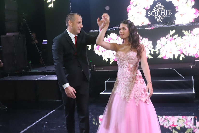 Exatamente à meia-noite, a música deu uma parada para a entrada de Sophie que, acompanhada da mãe Peinha, se dirigiu até ao pai Fernando para dançarem a tradicional valsa. Veja como foi.
