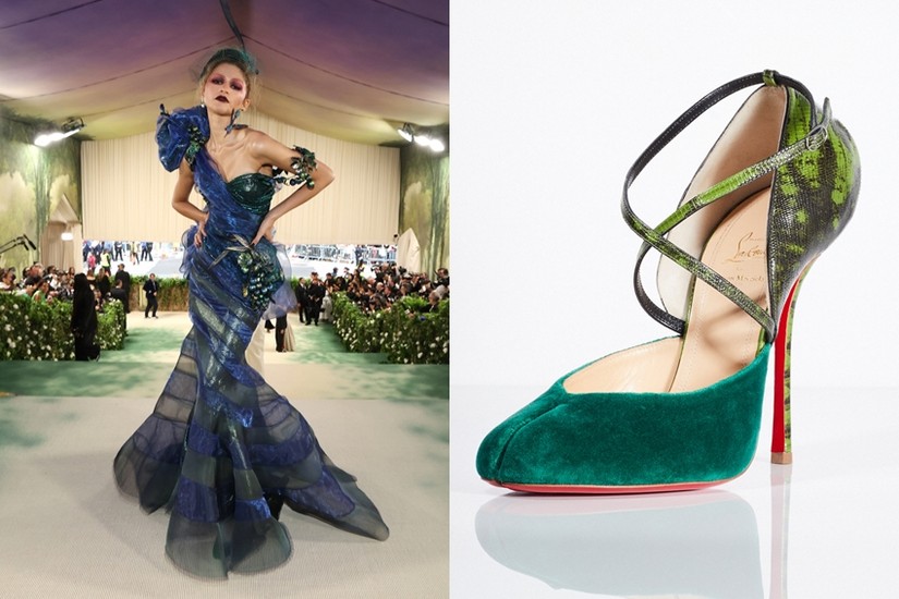 Para o Met Gala de 2024, que aconteceu ontem no Museu de Arte Moderna de Nova York e teve como tema "Belezas Adormecidas: Redespertando a Moda", os co-chairs Zendaya e Bad Bunny, e a apresentadora do tapete vermelho Gwendoline Christie, usaram Christian Louboutin para Maison Margiela.