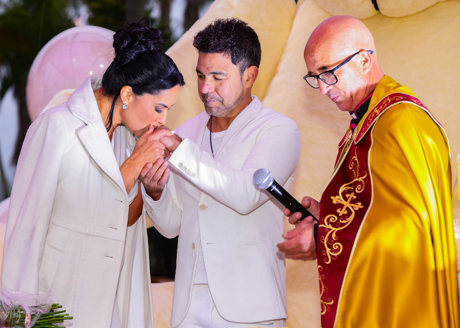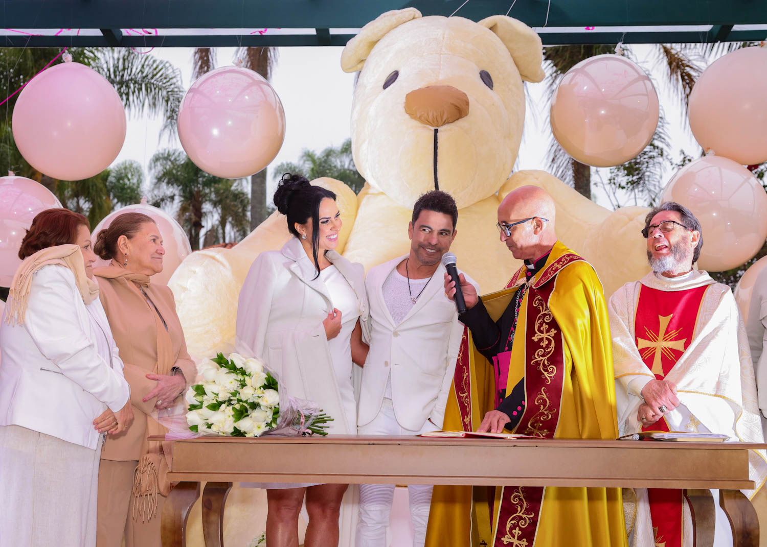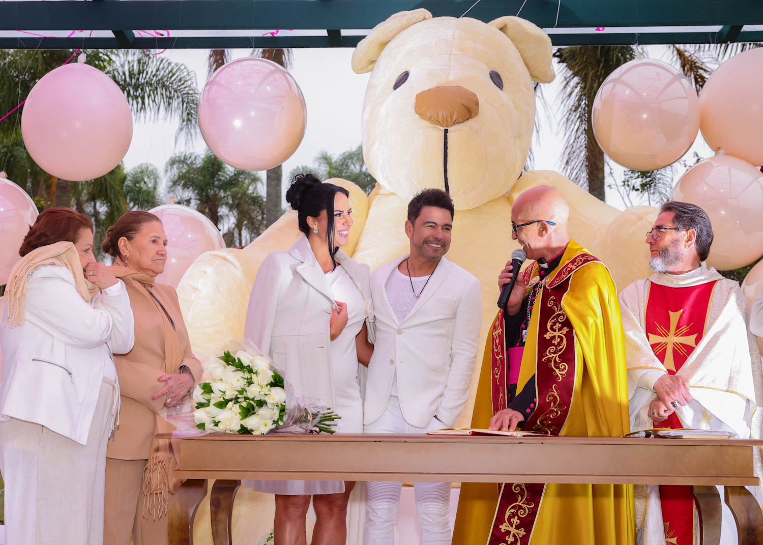 Com a presença das filhas Wanessa Camargo e Camilla Camargo e outros parentes, Zezé oficializou seu relacionamento com Graciele. Eles ficaram no palco com a família enquanto recebiam a benção de um padre e trocaram juras de amor. Muito emocionada, a noiva chorou durante a celebração religiosa.