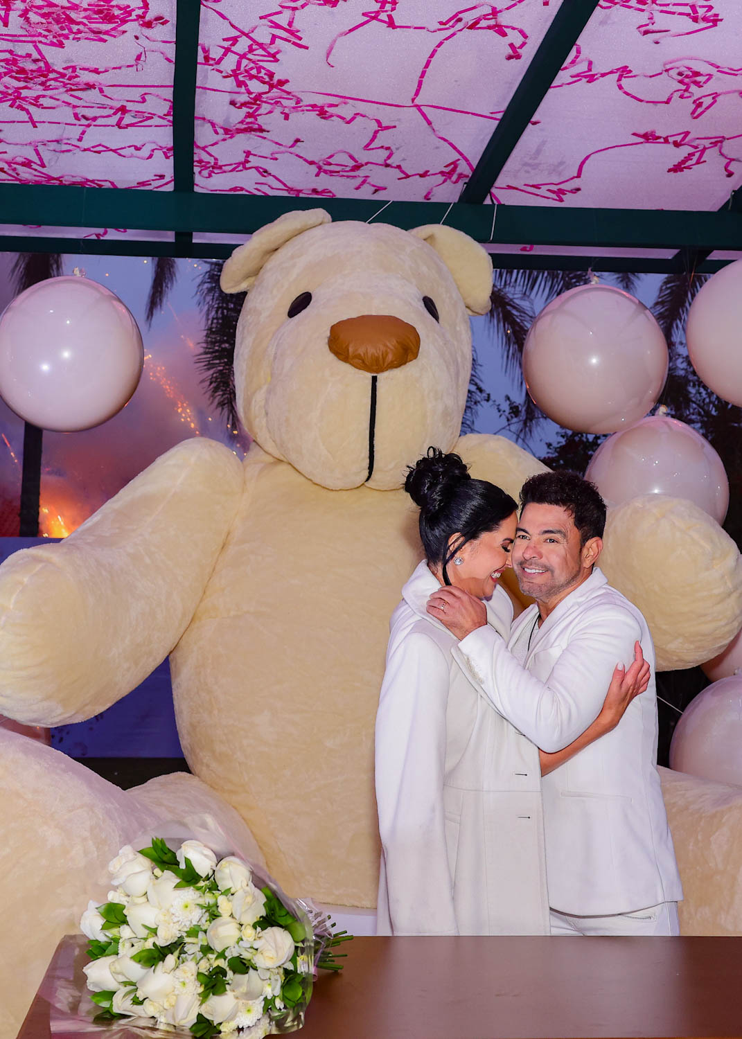 O cantor Zezé Di Camargo surpreendeu a amada Graciele Lacerda ao preparar um casamento na tarde deste domingo, logo após descobrirem no chá revelação que esperam uma menina.