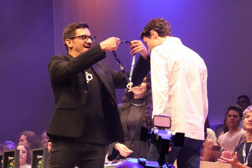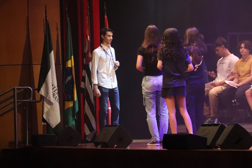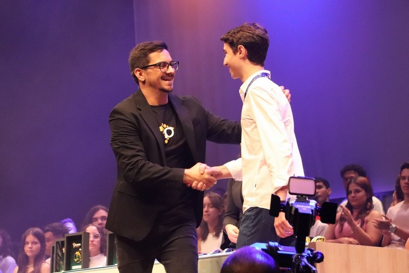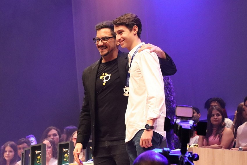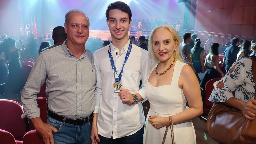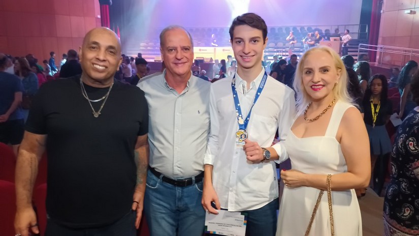 No palco, quase 100 jovens de todo o Brasil que se destacaram em relação aos mais de 6500 inscritos. Na plateia, além do corpo docente, chefes de departamentos e reitor da Universidade Mackenzie, pais orgulhosos vibrando pela conquista dos filhos. Entre eles, os queridos Manon Vasconcellos e Manoel Rodrigues, pais de Manoel.