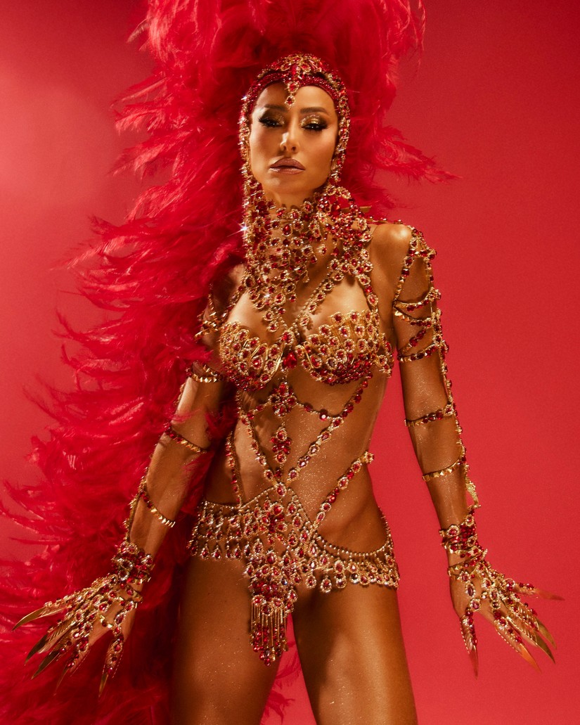 O tempo era curto. Com uma equipe dividida entre as duas cidades, cada segundo foi precioso. No voo, sua maquiagem foi completamente refeita dentro do avião, garantindo que a rainha chegasse impecável ao Anhembi. Já em solo paulista, a troca de fantasia aconteceu no camarim de um camarote, onde tudo foi preparado para que ela esteja pronta para entrar na avenida no momento exato.