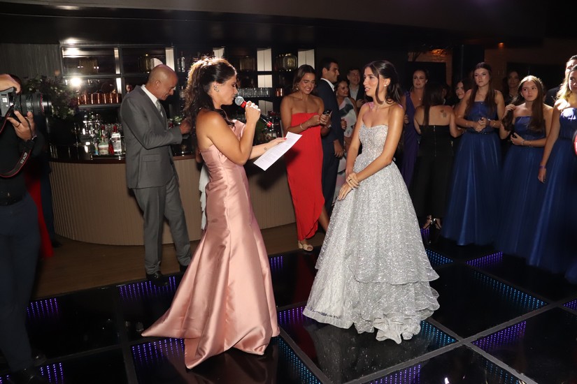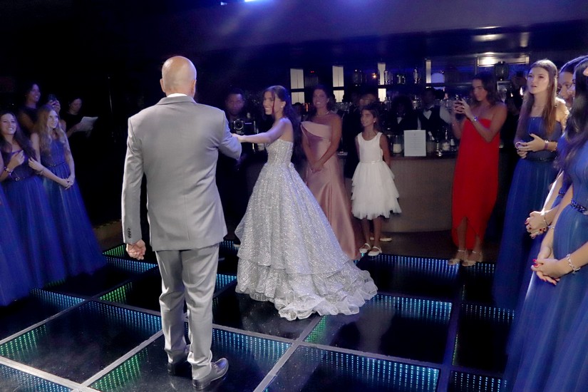Momento de grande emoção, com a tradicional valsa, onde Valentina dançou com o pai Marcelo e com o príncipe Thomas Reichenheim e, claro, teve direito a discursos da mãe Francini, da irmã Marcella e do pai.