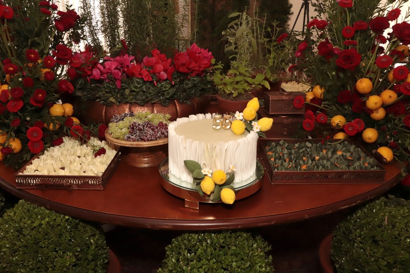 Seguindo a temática escolhida por Mara, que é uma verdadeira apaixonada pela Itália, o almoço, é claro, com buffet italiano, foi do Buffet Nossa Casa, harmonizado com os vinhos da Vinícola Barbara Eliodora. Já a decoração foi de Thita Marcon e os doces da Lamego.