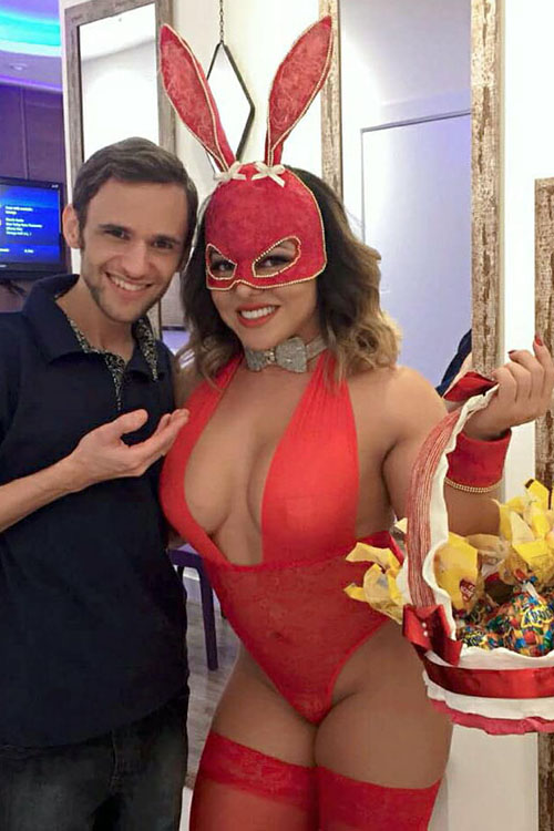 A rainha de bateria da Acadêmicos do Tatuapé, bicampeã no carnaval deste ano em São Paulo, Andreia Capitulino fez um mega sucesso caracterizada de coelhinha sexy, com uso de prótese cênica confeccionada pelo maquiador Anderson Natio, de Grandes Rios, Paraná. A musa comemorou a chegada da Páscoa, fazendo entrega de ovos e bombons no centro de Osasco, em São Paulo, para seus fãs e admiradores do seu trabalho que passavam no local. Andreia levou cerca de quatro horas para ficar pronta e causar. A prótese cênica pode ser usada em ensaios fotográficos, quanto para pular o carnaval na avenida. Ainda que tenha usado materiais não muito difíceis de encontrar, como látex, massa de modelar, óleo vegetal, gesso, algodão, brocal e glitter, a fantasia precisou de capricho e muita atenção por parte do idealizador e demorou 20 horas para ser finalizada. Andreia, esbanjou sensualidade num visual turbinado. E, por mais que o ensaio pareça simples, a aplicação da prótese no corpo de Andreia Capitulino levou três horas e 20 minutos! Só depois desse tempo é que a musa pode posar e gravar sem ter problemas com o look.
