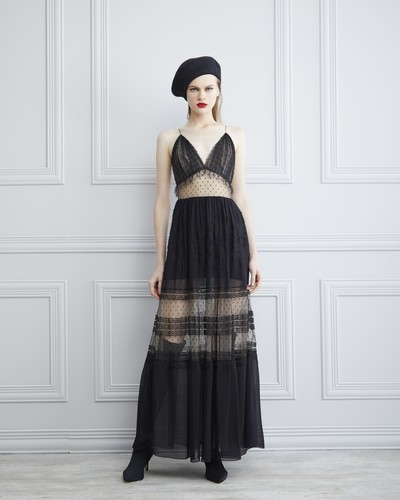 Nos detalhes, o luxo traduzido em materiais nobres. O uso de cristais com plumas, veludos de delicado brilho sedoso, tules de poás e as múltiplas rendas tinturadas são elementos únicos desta criação a quatro mãos.