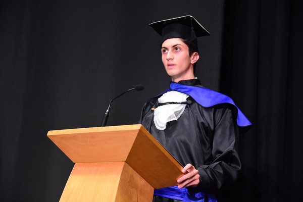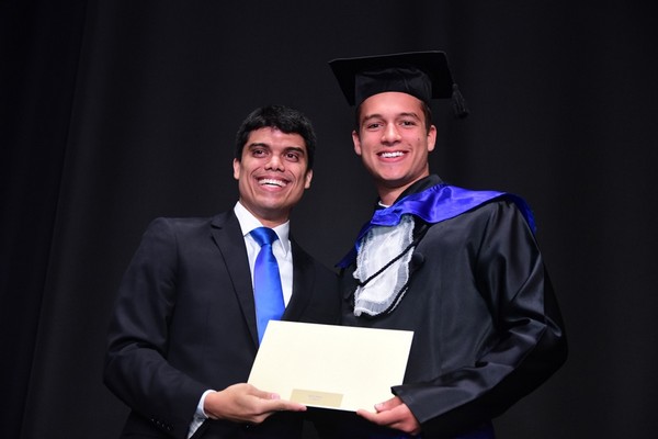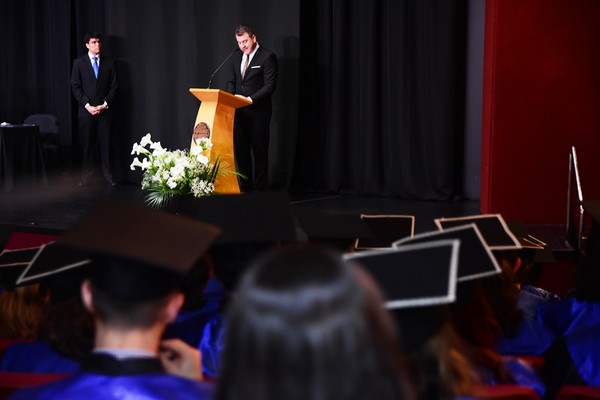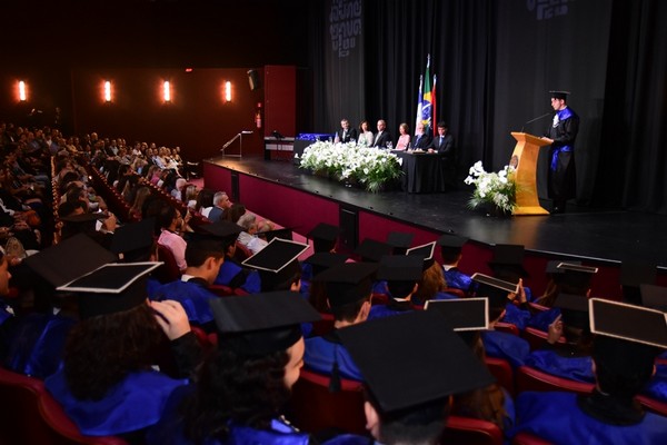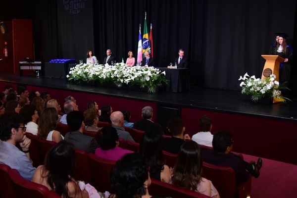 Em seu discurso, o diretor da Escola, José Antonio Gorza Pignaton, comentou sobre as possibilidades que os estudantes experimentaram ao estudar em uma escola de currículo ampliado, das viagens pedagógicas nacionais e internacionais, intercâmbios, simulações nos fóruns estudantis, além do convívio humano e material, em espaços físicos humanizados e participação em projetos inovadores. “… lembre-se que, mais consistente que a inspiração do criativo, é a transpiração do inovador e que o comprometimento com valores éticos, mesmo quando o mundo caminha na contramão, é o bem maior, que diferencia humanos de essência dos de perfumaria.”
