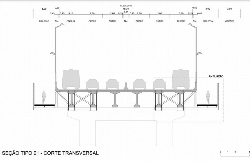 A estrutura que será anexada à ponte nos dois sentidos como forma de impedir o suicídio, contará com uma grade antiescalada para a proteção, com altura de três metros e uma pista de ciclovia, com pavimento asfáltico de três metros de largura.