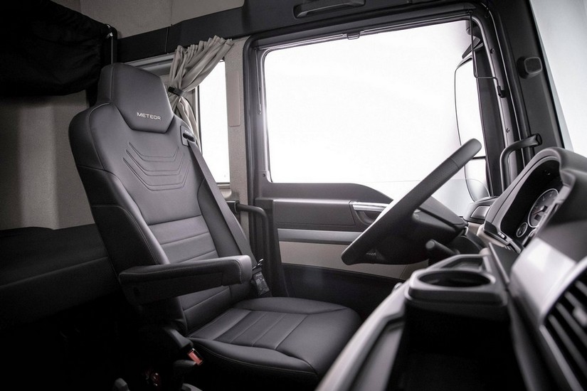 Para entrar, são quatro degraus e mais de três metros de altura do chão até o topo da cabine. Espaço e conforto são os principais pontos fortes: os ocupantes podem andar livre, sem necessidade de abaixar. Geladeira, tela multimídia de sete polegadas (com MirrorLink e Apple CarPlay), aquecimento do retrovisor, faróis com luzes diurnas de LEDs (DRLs) integrados e lanternas de LEDs, quadro de instrumentos com tela colorida para o computador de bordo, ar-condicionado automático, controle de estabilidade com assistente de partida em rampa, cortina blackout, maleiro, cama, entrada USB, luz de LED para leitura, tomadas 12V e 24V, relógio digital e até carregamento de celular por indução podem ser disponibilizados.