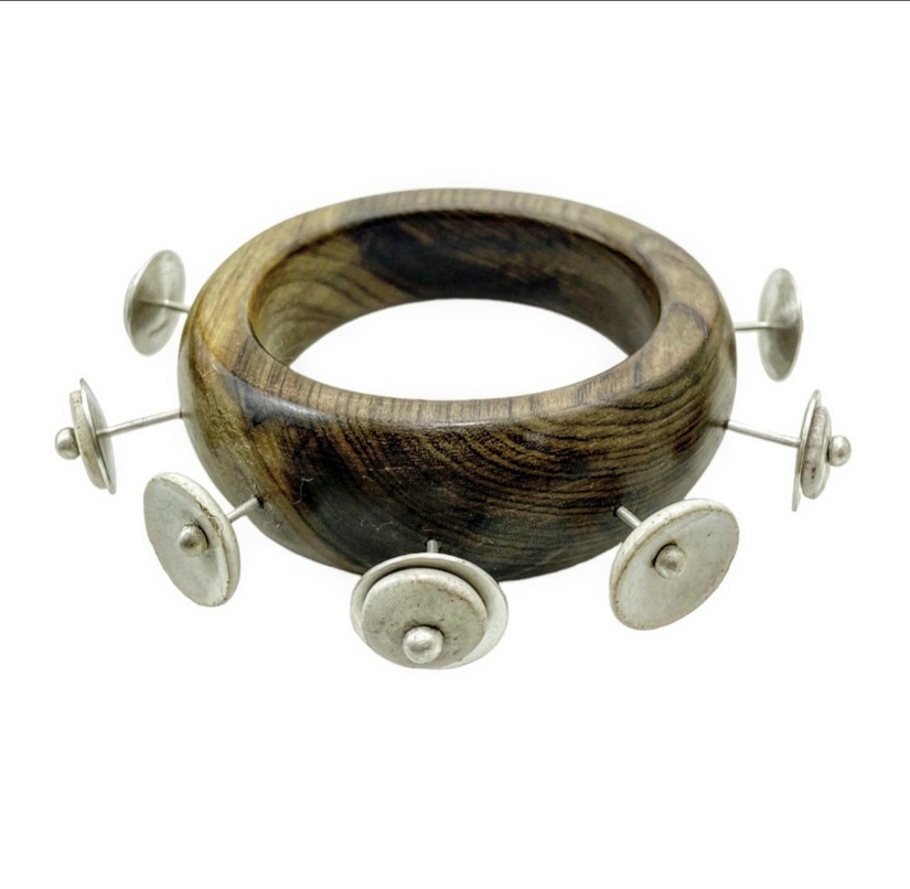 Dentre as peças participantes, o colar produzido pela aluna Lívia Costa chama atenção pelo seu tamanho e a pulseira por estarem perfeitamente dentro do esperado para o contexto do evento. O material utilizado foi a mescla de madeira, prata, cerâmica e couro, que resultou numa verdadeira obra de arte da joalheria. Livi ressalta que cada peça do colar foi feita uma a uma.