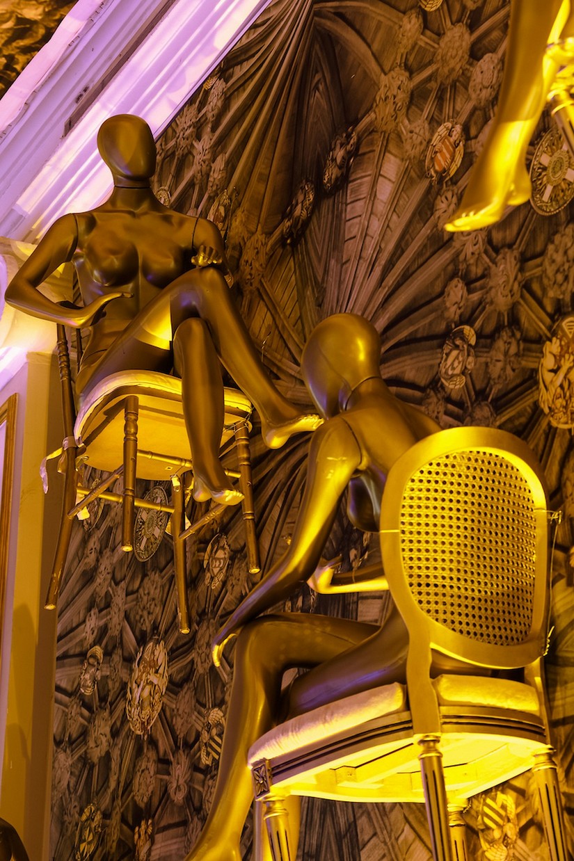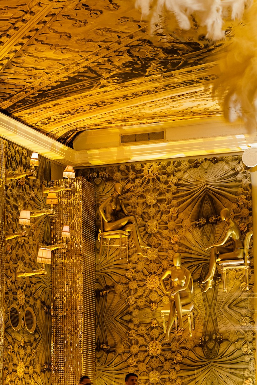 Ao entrar no Golden Room, primeira casa de espetáculos da América Latina e um dos principais salões do hotel, os convidados sentiram uma grande mudança na atmosfera, um verdadeiro convite para voltar no tempo, mais precisamente ao ano de 1923. O icônico salão, que recebeu em eventos inúmeras celebridades do mundo inteiro, como Ray Charles, Josephine Baker, Brigitte Bardot, Nat King Cole, Caetano Veloso, entre outros, foi inspirado na década de 20. “Trouxemos elementos como franjas, lampiões, plumas, alguns manequins vestidos com roupa da época e muitos tons de bege e dourado, um ambiente mais claro e clássico, trabalhando a similaridade com a arquitetura do salão”, conta Daniel Cruz, cenógrafo.