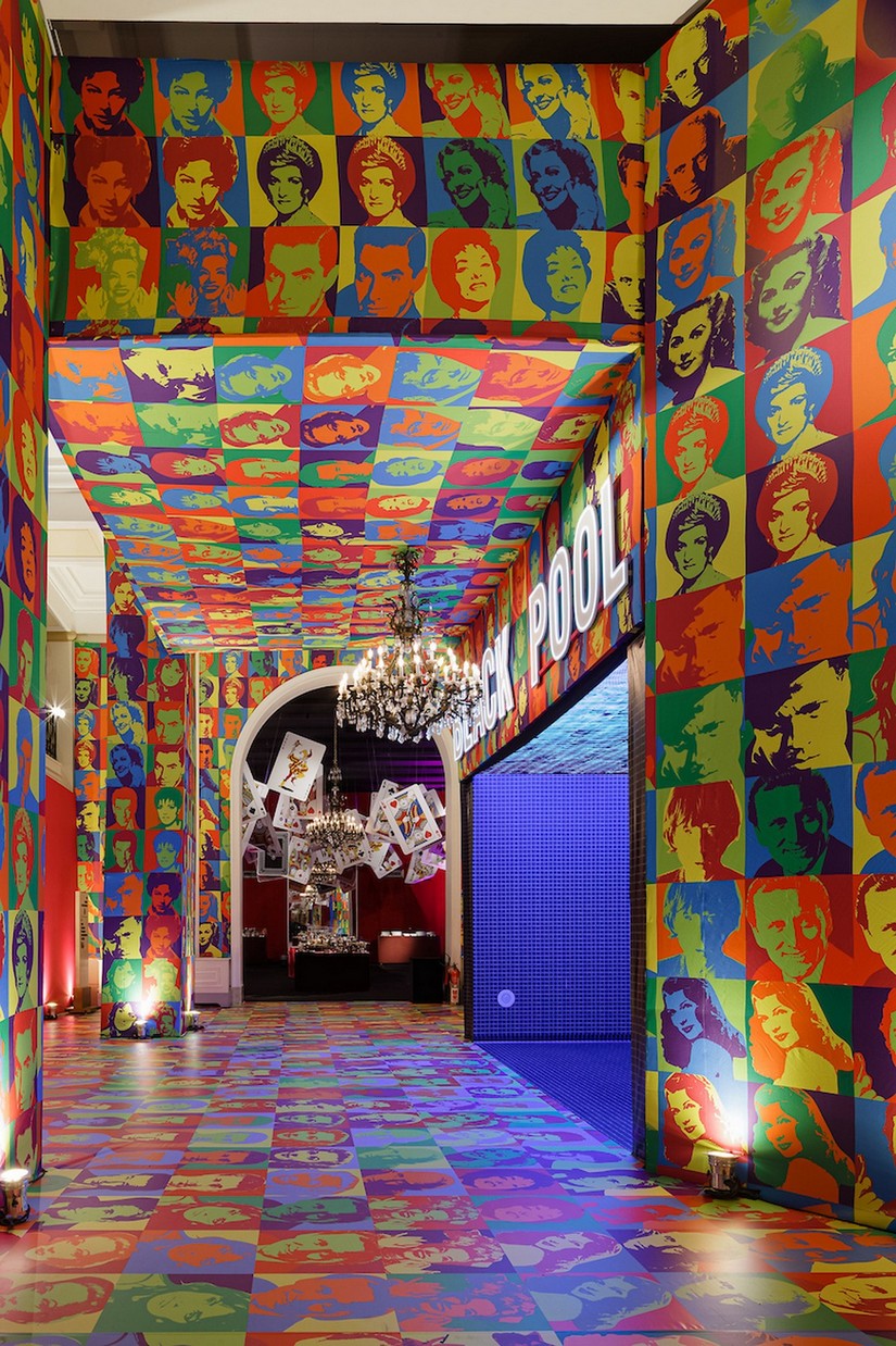 Ao final do túnel, chegando aos salões frontais, a festa ganha cada vez mais cor e surgem diversas imagens em estilo Pop Art - arte criada por Andy Warhol e difundida por representar muita intimidade entre a arte e a vida cotidiana moderna. Gustavo acrescenta: “O preto, cor clássica e universal que combina com todas as outras cores, se une ao branco, num perfeito equilíbrio entre opostos. Com isso, também quis representar a diversidade cultural que o hotel representa, sejam jovens ou idosos, brasileiros ou estrangeiros, o Baile do Copa é pra todo mundo!" Ao fundo dos salões, uma representação fiel da famosa “Black Pool”, a piscina mais exclusiva da cidade, situada no desejado sexto andar do hotel junto das suítes presidenciais mais cobiçadas do Rio de Janeiro.