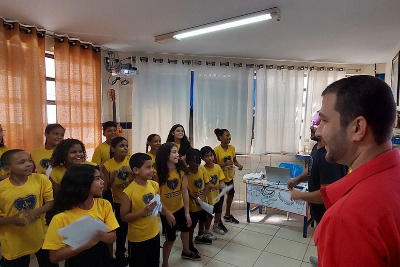 O cantor e compositor Leo Russo visitou, no dia 23 de março, o Centro Educacional da LBV, em Del Castilho. Além de conhecer o trabalho da Instituição, o compositor foi recebido pelo Coral Infanto-juvenil da instituição e teve a oportunidade conhecer o trabalho musical que é realizado com os atendidos na unidade educacional.