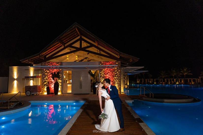 Para o jantar e a festa, os convidados seguem para o Tuna Restaurante, um dos mais sofisticados do resort, também com vista para o mar. O casal pode escolher entre um jantar com buffet ou serviço empratado, além de um menu de bebidas.