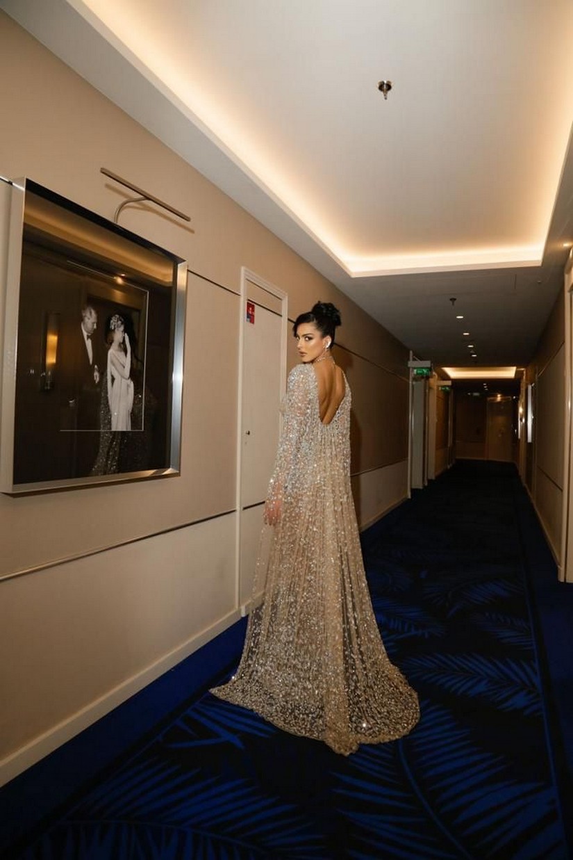 Ela escolheu um vestido nude da NYC Glamour Coutere que tinha como destaque uma capa chique brilhosa. Para complementar o look, ela usou sandálias do Rene Caovilla e joias da Chanel. A responsável pela beleza foi Paty Brunni.