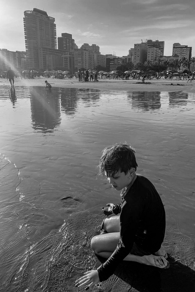 O ensaio recém premiado Alma D´Água, com uma coleção de 20 fotos, foi realizado por Fernanda Toigo em 2022 na praia do Gonzaga, enquanto passava alguns dias de descanso com sua família.