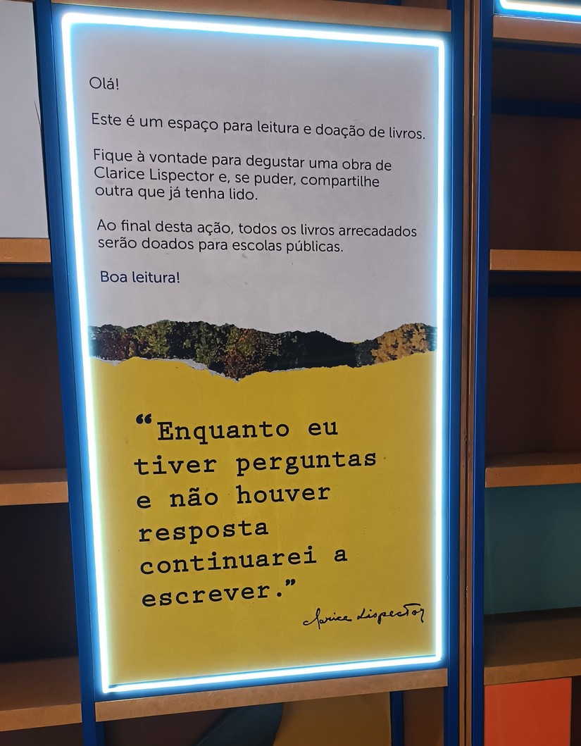 A mostra conta também com um painel interativo de fitinhas personalizadas, no qual os visitantes podem levar frases marcantes de Clarice como lembrança. Para os apaixonados pela literatura, a mostra traz um espaço de leitura exclusivo com uma estante abastecida mensalmente com livros da autora, permitindo que os passageiros conheçam e explorem as suas obras, além de servir como ponto de coleta para doações de obras da autora feitas pelos passageiros.
