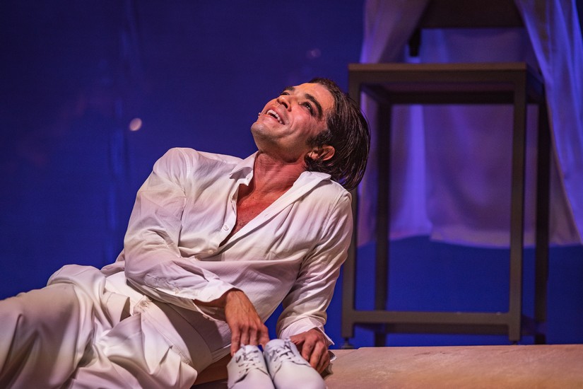 Quanto à encenação, as diretoras apostam em um ensemble potente, que apoia o protagonista do começo ao fim – e praticamente sem sair de cena. As trocas de figurinos e até maquiagens, inclusive, são feitas na frente do público, brincando com as ideias de oculto e explícito o tempo todo.